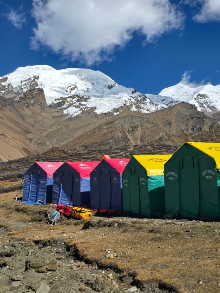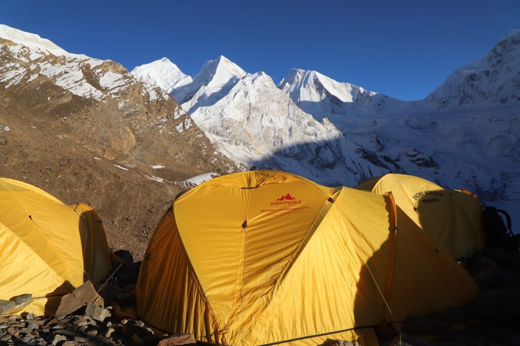 Wyobraź sobie poranek w bazie: cienkie smugi pary nad kubkiem herbaty, trzask lodu pod rakami i ciszę, którą przerywa tylko wiatr. Nad Tobą — biały amfiteatr Himlung Himal (7126 m), a w oddali monumentalne masywy Annapurny i Manaslu.
