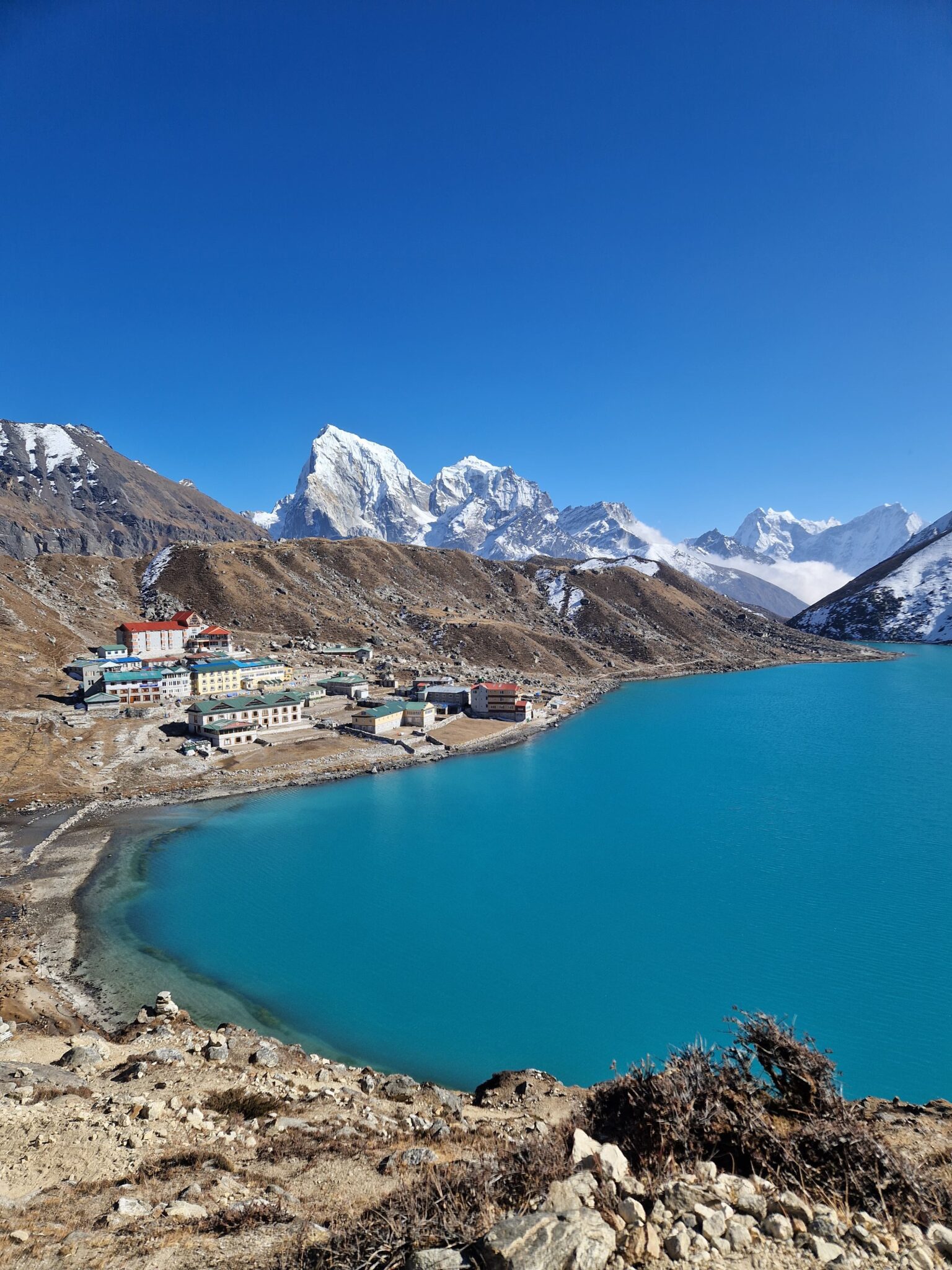 Rejon Gokyo słynie z malowniczych jezior położonych powyżej 4700 m n.p.m. Ich turkusowa barwa w połączeniu z otaczającymi ośmiotysięcznikami – Cho Oyu, Everestem czy Lhotse – tworzy widoki, które wielu uznaje za jedne z najpiękniejszych w całych Himalajach. Wioska Gokyo, położona na brzegu trzeciego jeziora, to świetne miejsce na aklimatyzację i odpoczynek.