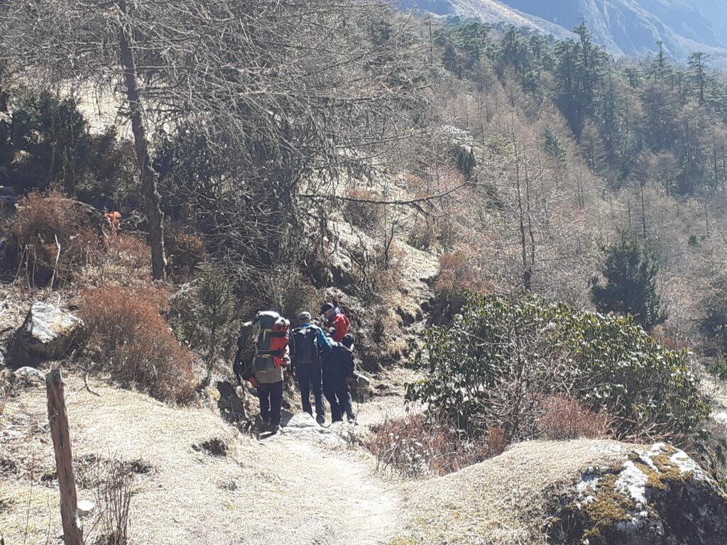 - Strome podejście przez lasy rododendronowe i wyjście ponad linię drzew do wysokogórskiej bazy pod przełęczą.