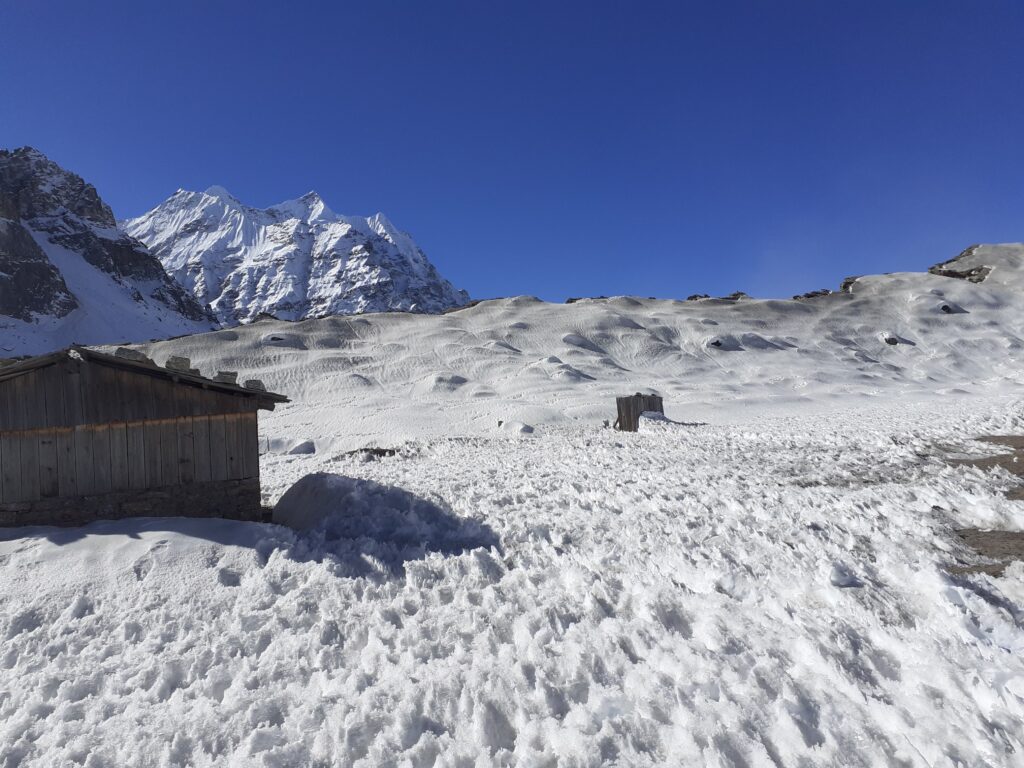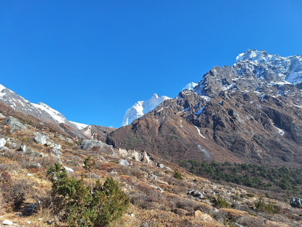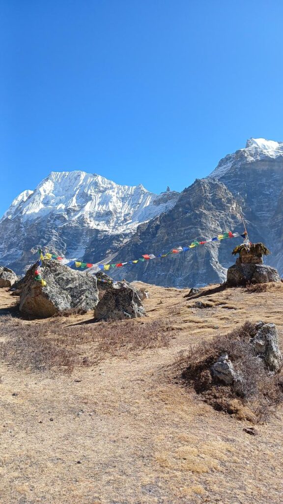 - Wyjście w wyższe partie – surowe krajobrazy, pastwiska jaków i pierwsze wielkie widoki na szczyt Jannu (7710 m).