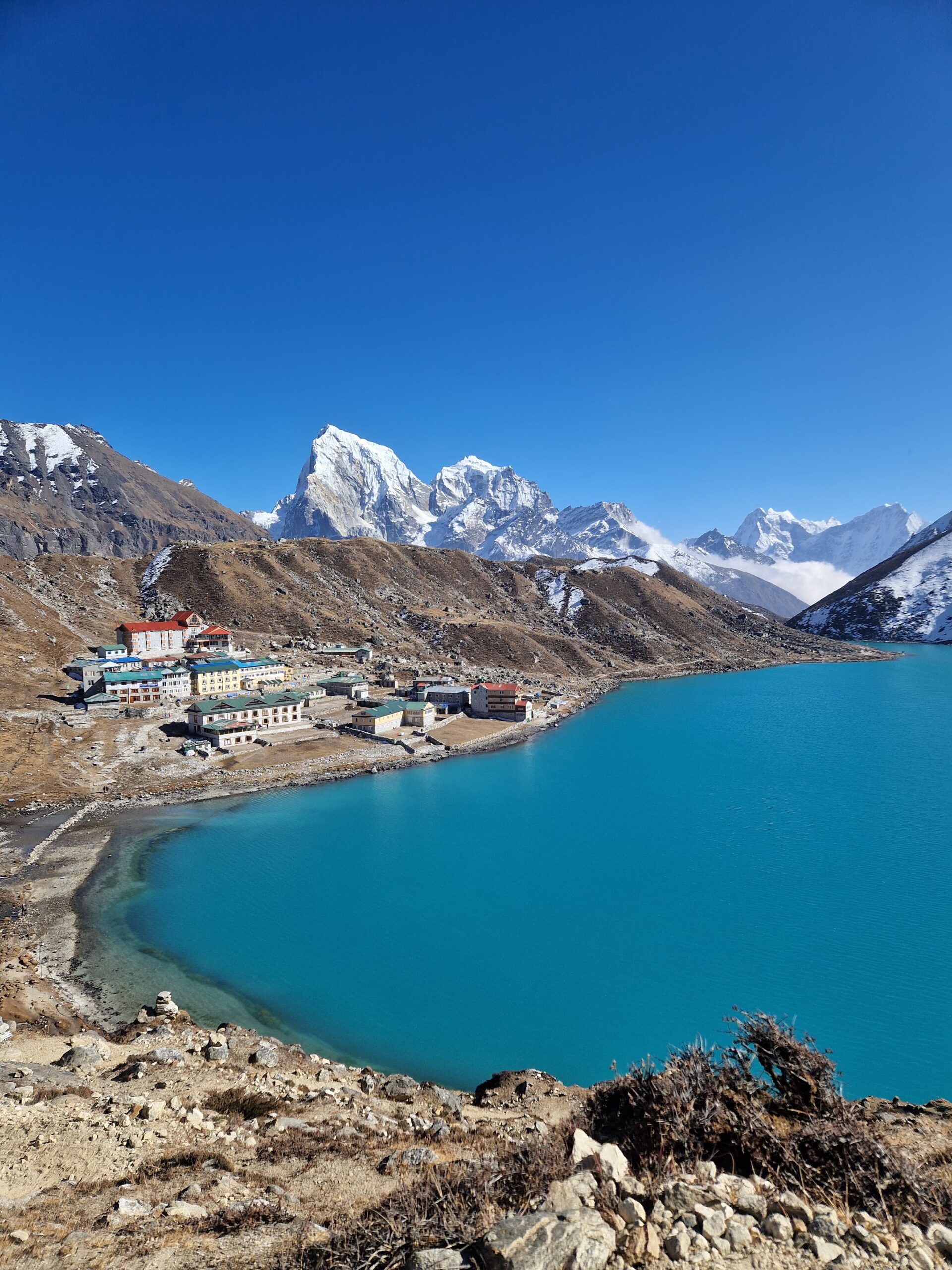 - Wyjście w wyższe partie – surowe krajobrazy, pastwiska jaków i pierwsze wielkie widoki na szczyt Jannu (7710 m).
