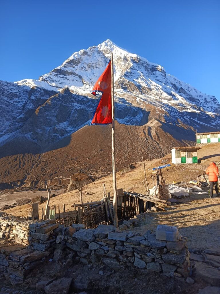 Dni 9-11: Mumbuk → Yangri Kharka → Langmale Kharka → Makalu Base Camp (4870 m) Stopniowe podejście przez wysokogórskie łąki i moreny lodowcowe, w otoczeniu coraz bardziej surowych krajobrazów. Dotarcie do Makalu Base Camp u stóp piątego najwyższego szczytu świata.