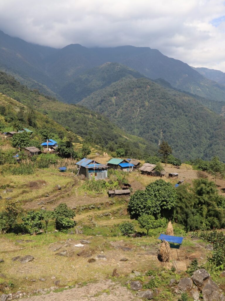 Dni 4-7: Num → Seduwa → Tashigaon → Khongma Danda (3560 m) Stopniowe wejście przez bujne lasy, wioski Rai i Sherpa, bambusowe zarośla i lasy rododendronów. Pierwszy dzień aklimatyzacyjny w Khongma Danda z panoramami szczytów.
