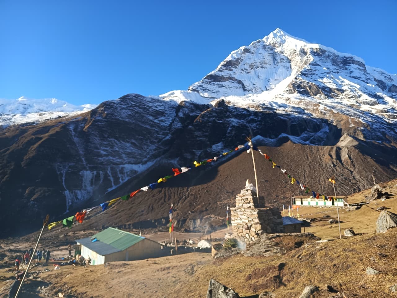 Dni 9-11: Mumbuk → Yangri Kharka → Langmale Kharka → Makalu Base Camp (4870 m) Stopniowe podejście przez wysokogórskie łąki i moreny lodowcowe, w otoczeniu coraz bardziej surowych krajobrazów. Dotarcie do Makalu Base Camp u stóp piątego najwyższego szczytu świata.