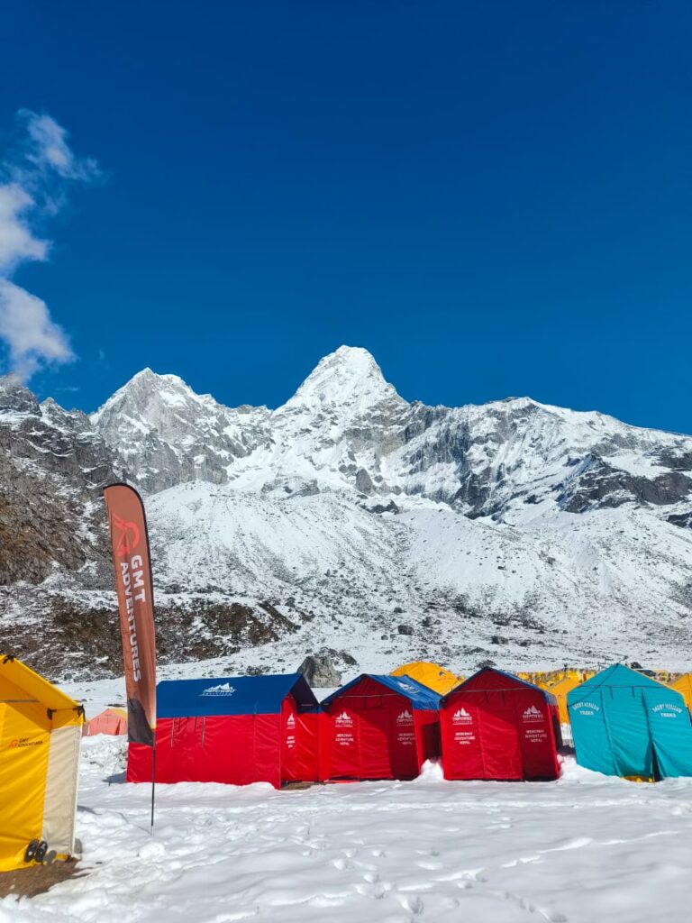 W trakcie tej wyprawy zapewniamy nocleg w bazie pod Ama Dablam (jeśli tylko będziesz mieć na to ochotę!), co pozwoli Ci lepiej poznać i poczuć atmosferę wysokogórskiego świata. Będąc tam podczas sezonu wspinaczkowego, będziesz mieć okazję obserwować śmiałków planujących wejście na szczyt oraz spotkać światowej sławy himalaistów. Tym razem wcale nie musisz wchodzić z nimi wyżej 😉