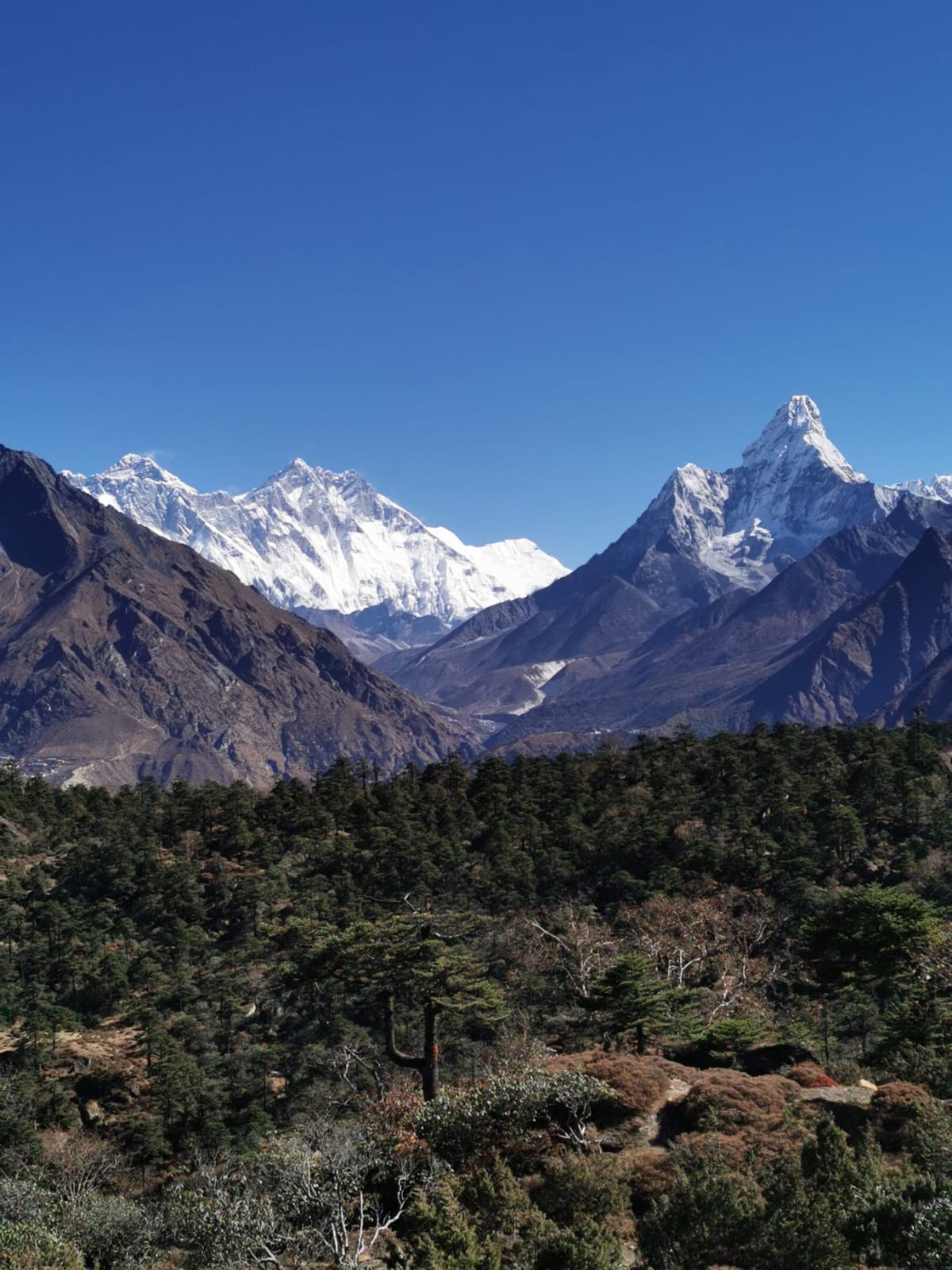 - Widoki jak z marzeń – Everest, Lhotse, Makalu i oczywiście Ama Dablam – jedna z najbardziej fotogenicznych gór świata.